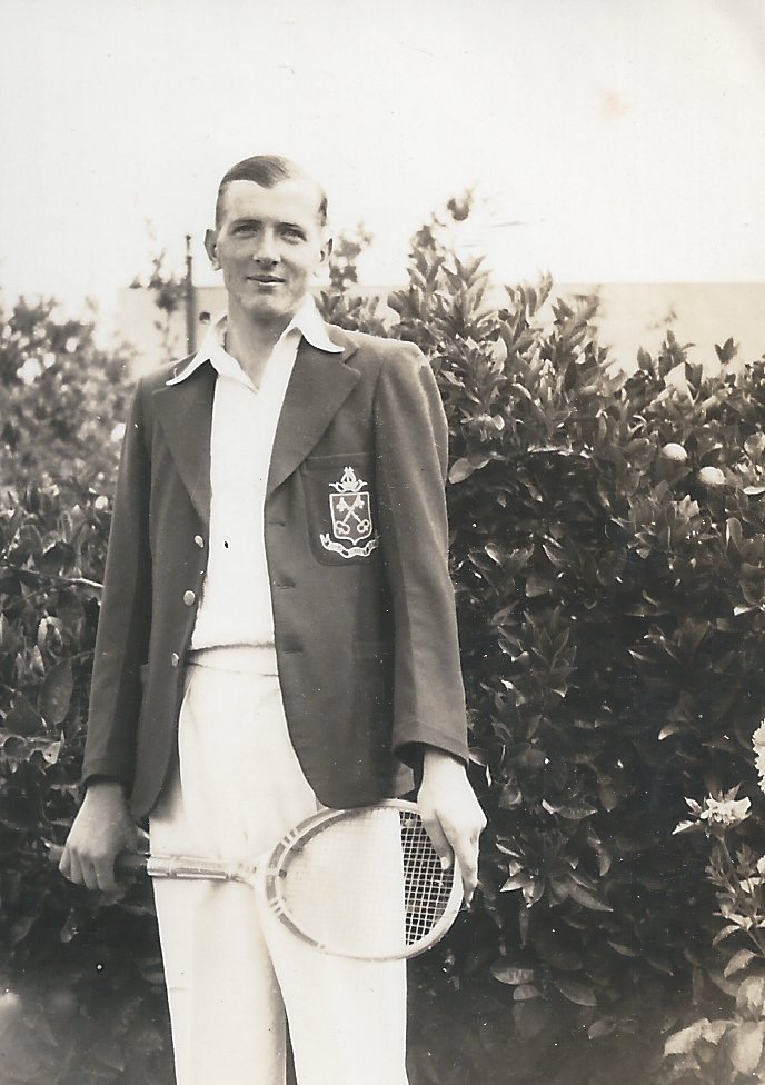 1. Tom in St Peters Boys Uniform: Tom as a teenager showing his early love tennis which endured throughout his life, Abt 1937, St Peters College Adelaide, South Australia.